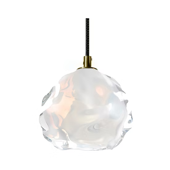 Las obras se soplan en cristal transparente sólido o utilizan la técnica italiana de "sommerso" o color encapsulado. Los colgantes Happy aprovechan el grosor y el brillo de nuestro cristal para crear una luz con refracciones infinitas.