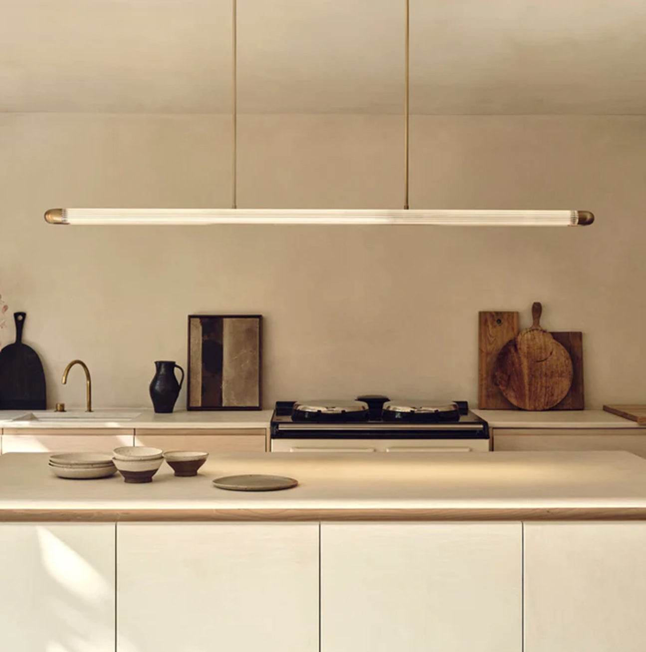 La lámpara colgante Strata 1600 proyecta una luz suave y difusa que eleva con gracia las mesas de comedor, las islas de cocina y las encimeras. Encuéntralas en diferentes tamaños.